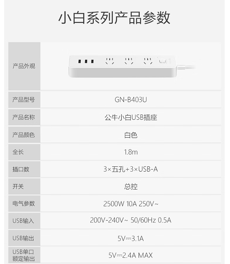 公牛(BULL)新國標(biāo)公牛小白USB插座 GN-B403U 單位:個(gè)