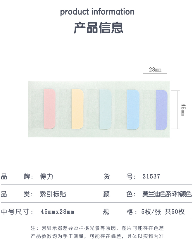 得力索引標(biāo)貼 21537 大號 單位:10張/包