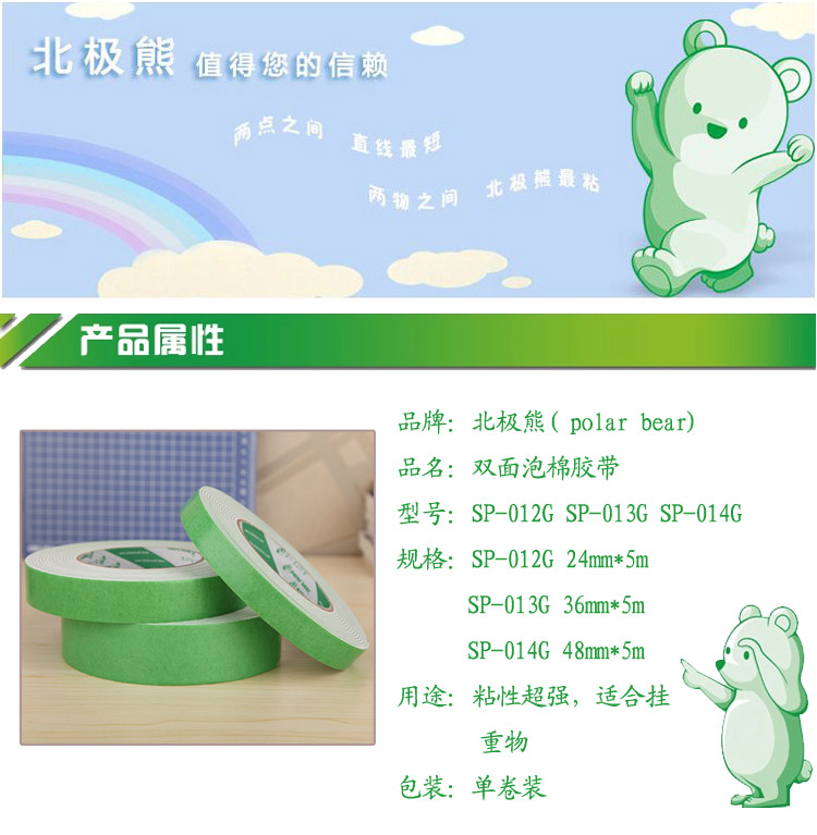 北極熊雙面泡棉膠帶 SP-013G(36mm*5M) 單位:卷