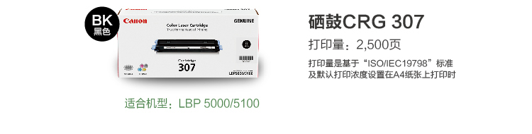 佳能硒鼓 CRG-307BK 黑色硒鼓(適用:LBP5000/LBP5100) 單位:支