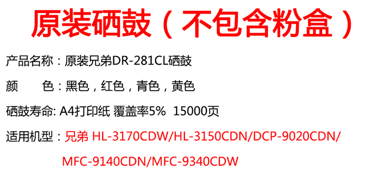 兄弟硒鼓 DR-281CL 黑色硒鼓 適用:HL-3150CDN/3170CDW/DCP-9020CDN/MFC-9140CDN/9340CDW 單位:支