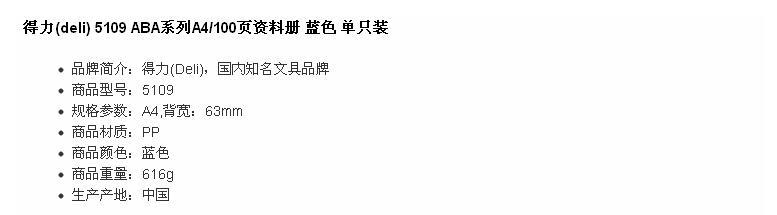 得力(deli) 5109 A4/100頁 資料冊(cè)/文件冊(cè) ABA系列 藍(lán)色 單只裝