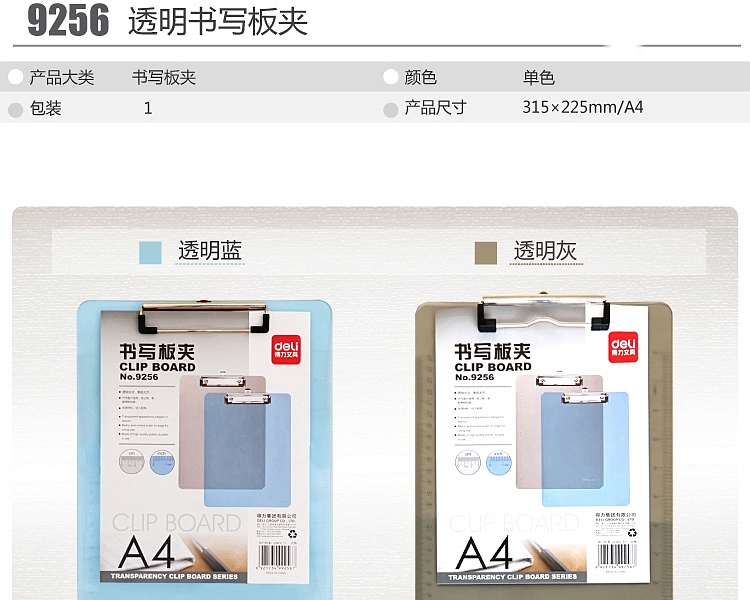 得力 9256 透明書寫板夾 顏色隨機(jī)
