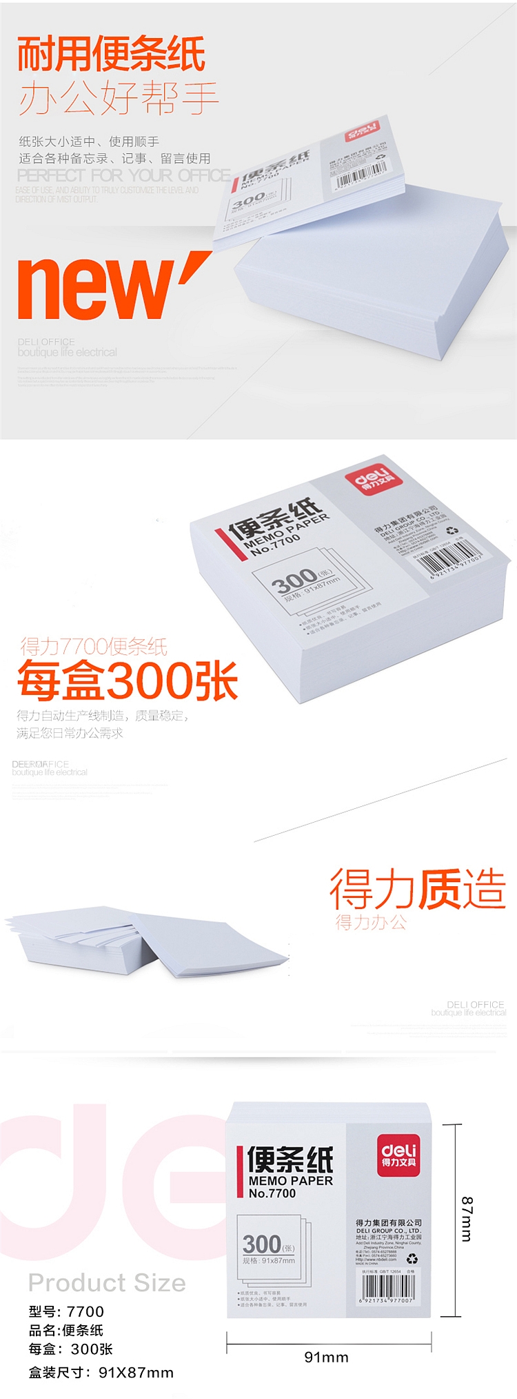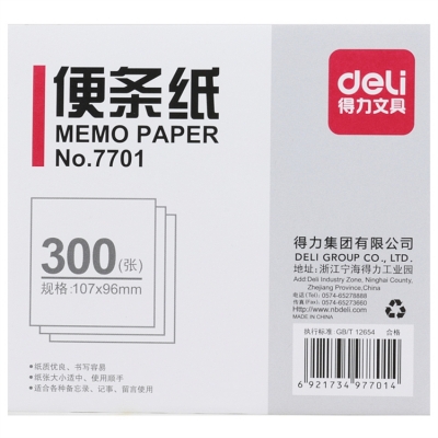 得力 7700便條紙/便簽本/留言本/空白紙 單位:包