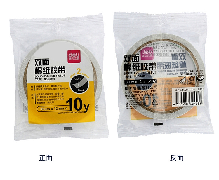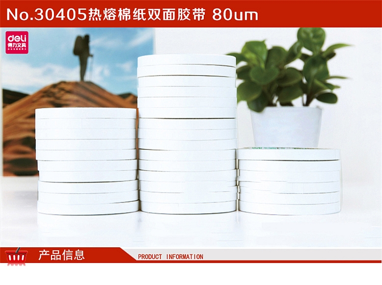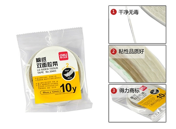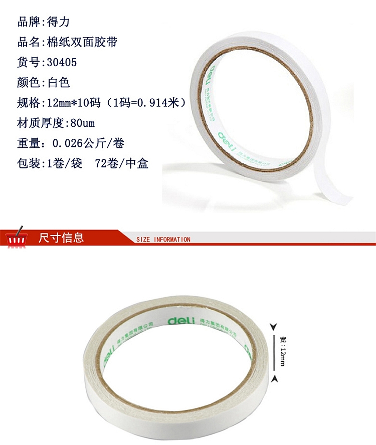得力雙面膠帶 30405(12mm*10y)棉紙兩面膠帶高粘度 單位:卷