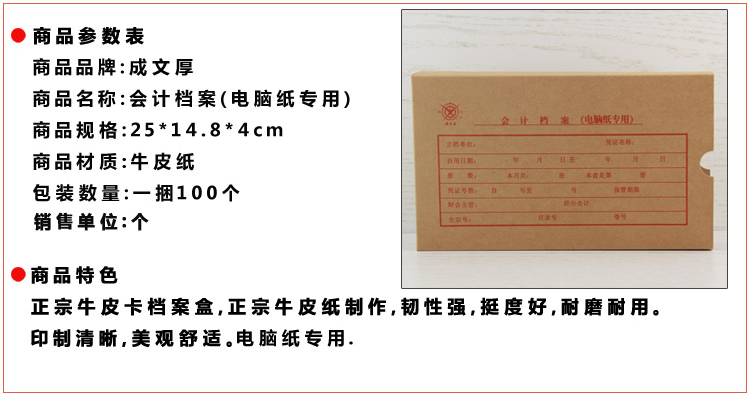 成文厚牛皮紙憑證盒 電腦憑證盒 會計檔案電腦紙專用 單位:100個/包