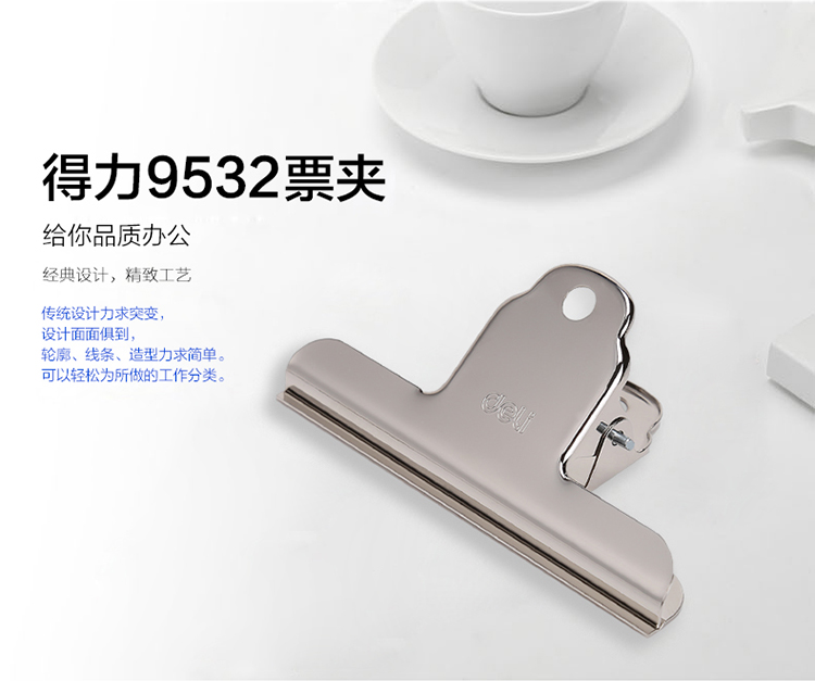 得力(deli)9532 102mm山形鐵票夾 3只/袋