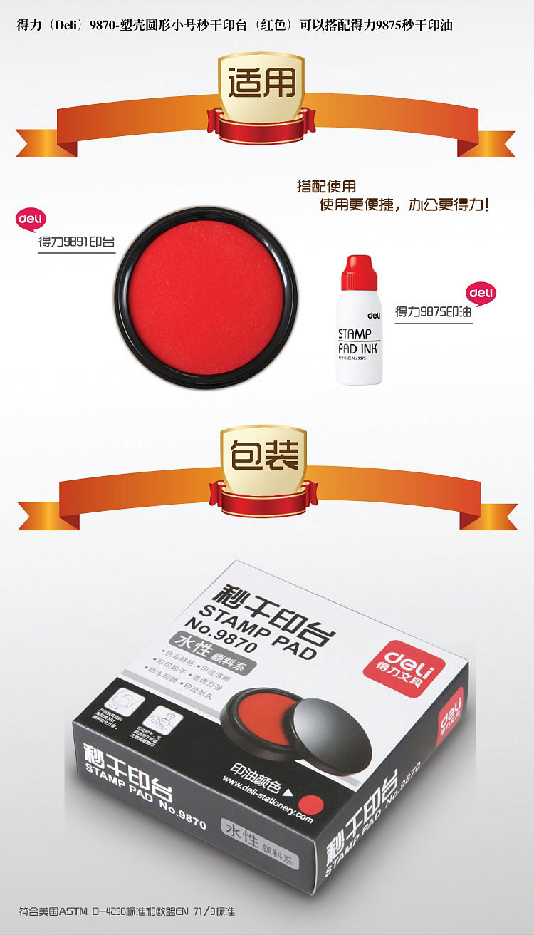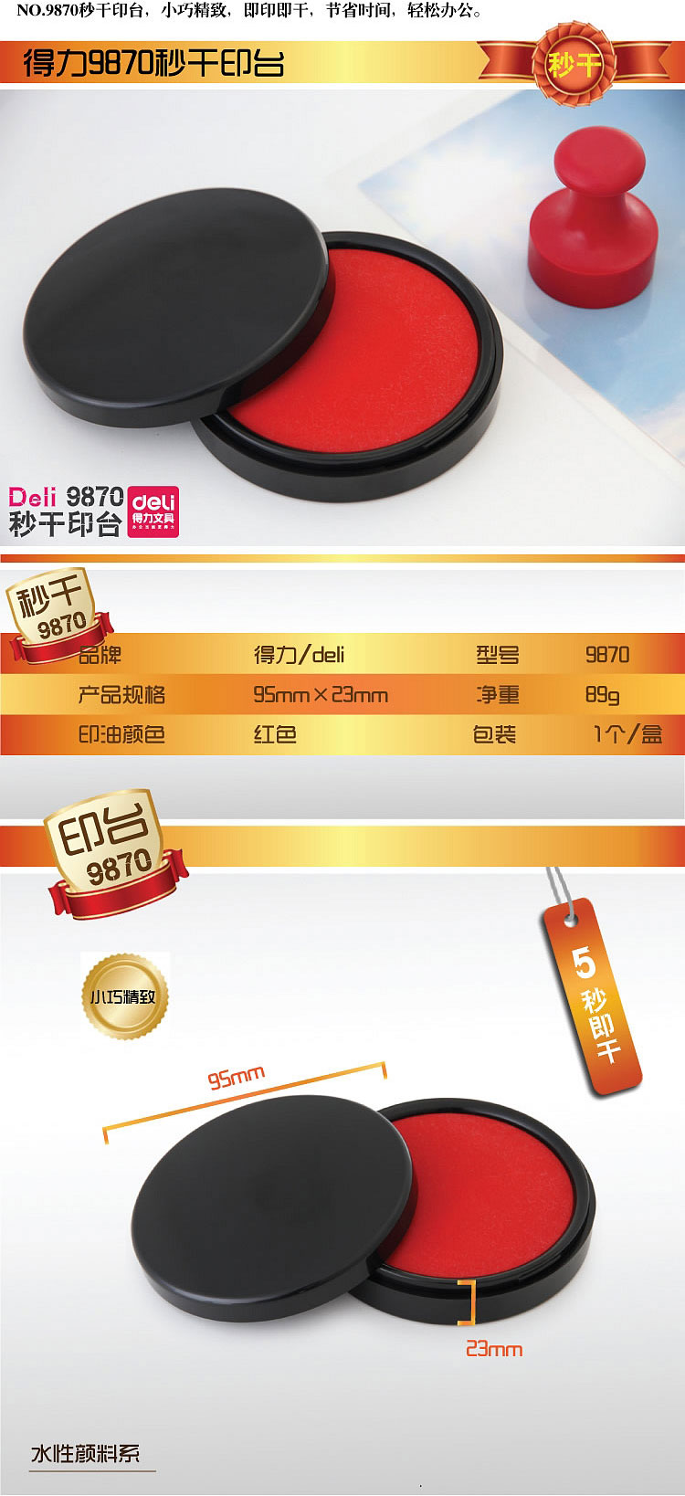 得力 9870 快干防水印臺/快干印臺/印泥紅色 單位:個