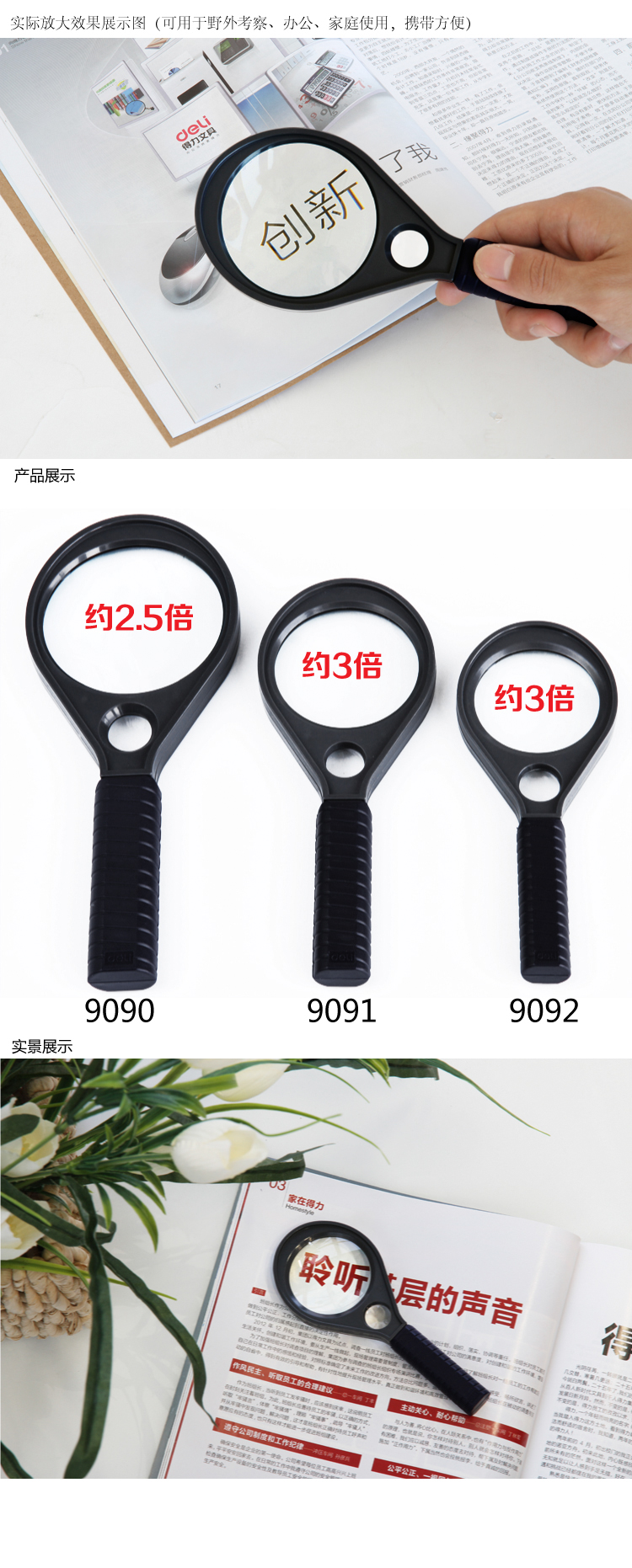 得力放大鏡 9090 帶輔助放大鏡 Ф75mm 單位:個(gè)