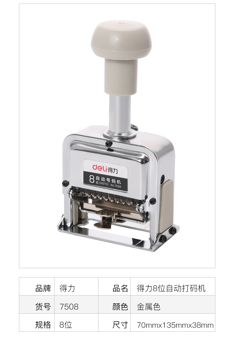 得力打號機(jī) 7508 8位自動號碼機(jī) 單位:個(gè)
