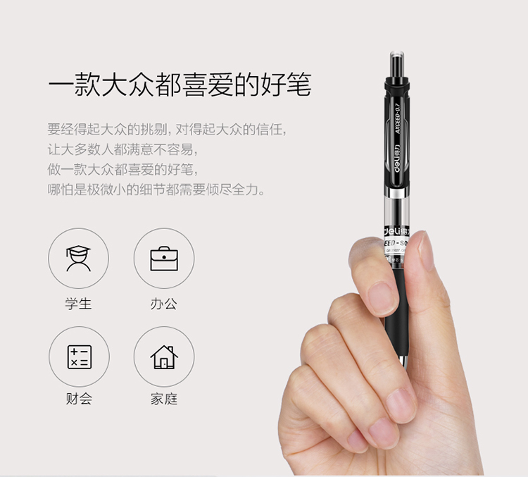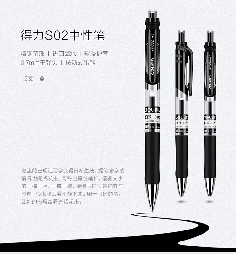 得力 S02 0.7mm 按動軟中性筆簽字筆 黑色12支/盒