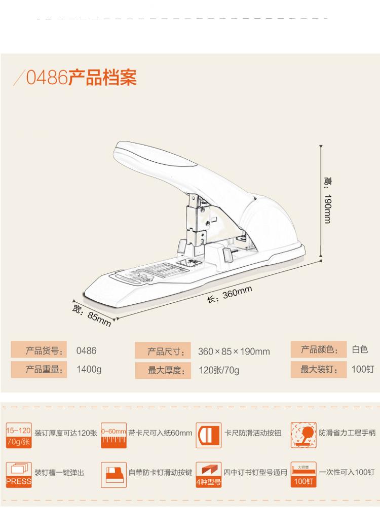 得力訂書機(jī) 0486 重型厚層訂書機(jī)120張(23/6-23/17) 單位:個(gè)