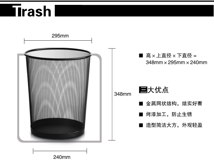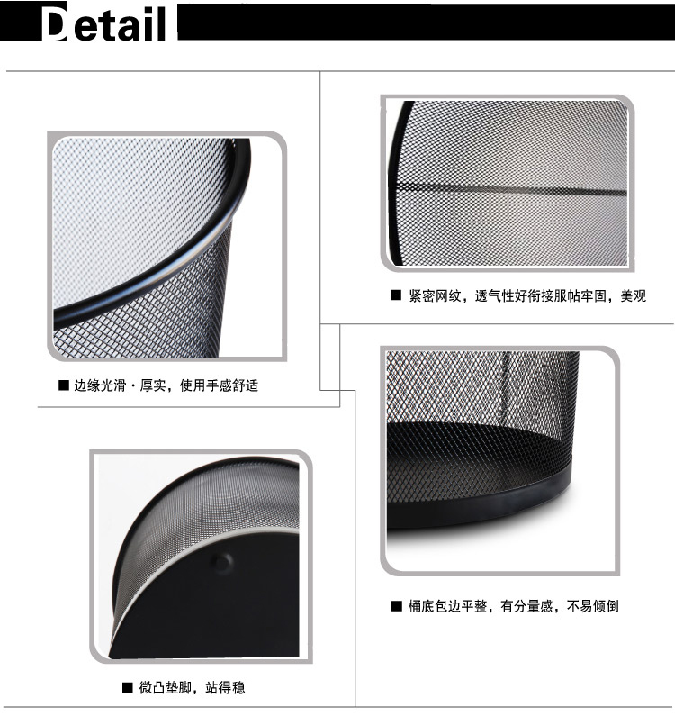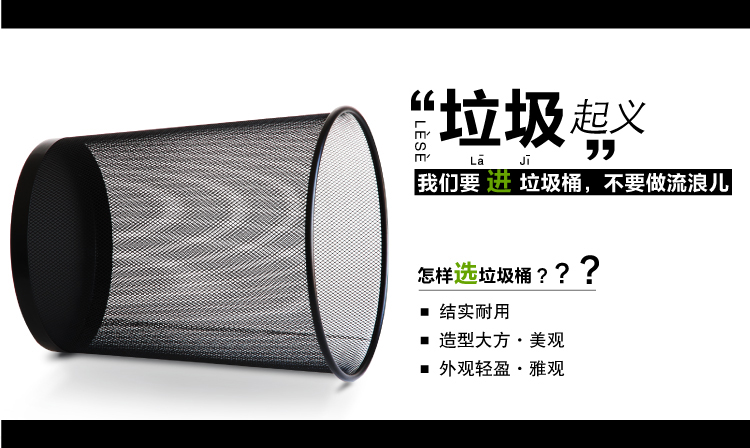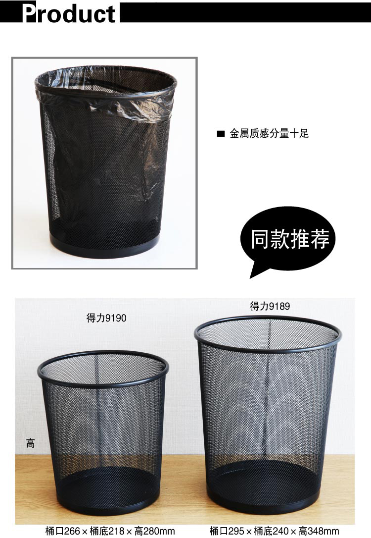 得力(deli)9189 穩(wěn)固鐵網(wǎng)辦公家用圓紙簍/垃圾桶 大號 黑色