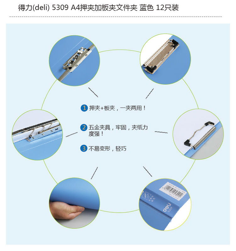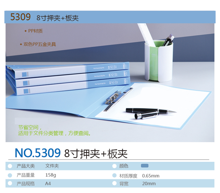 得力(deli) 5309 A4長押夾加板夾文件夾 藍(lán)色