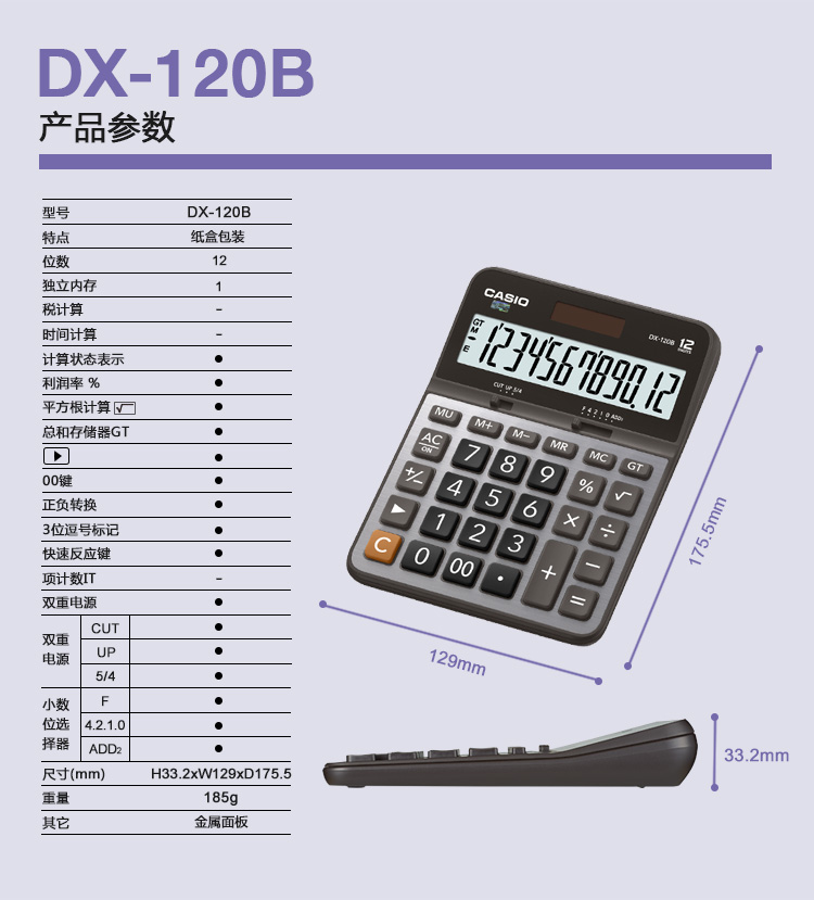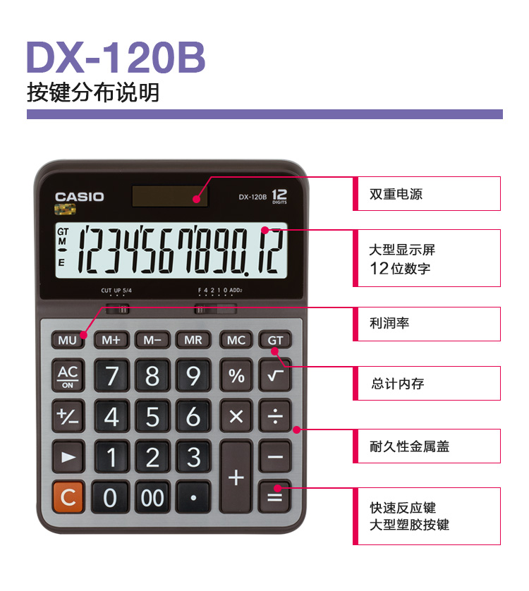 卡西歐計(jì)算器 DX-120B辦公商務(wù)計(jì)算器 中號(hào) 單位:個(gè)