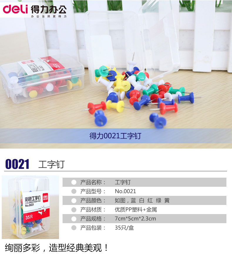 得力工字釘 0021 便捷彩色工字釘 多色混合 單位:盒