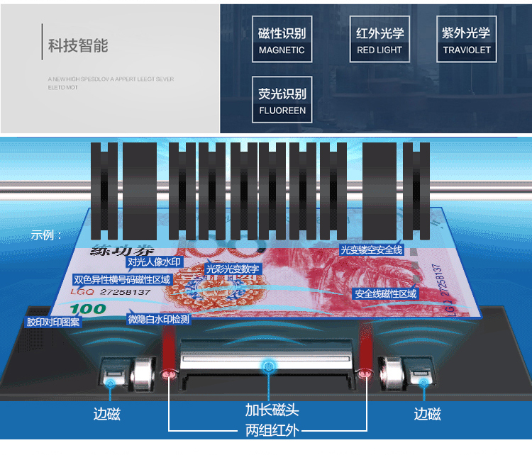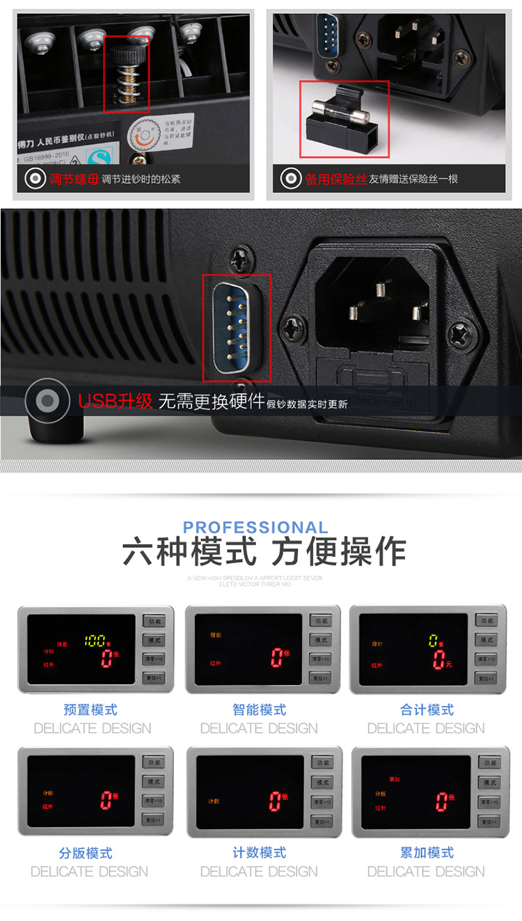 得力驗鈔機 3908 銀行專用全智能語音報警點鈔機驗鈔機 單位:臺