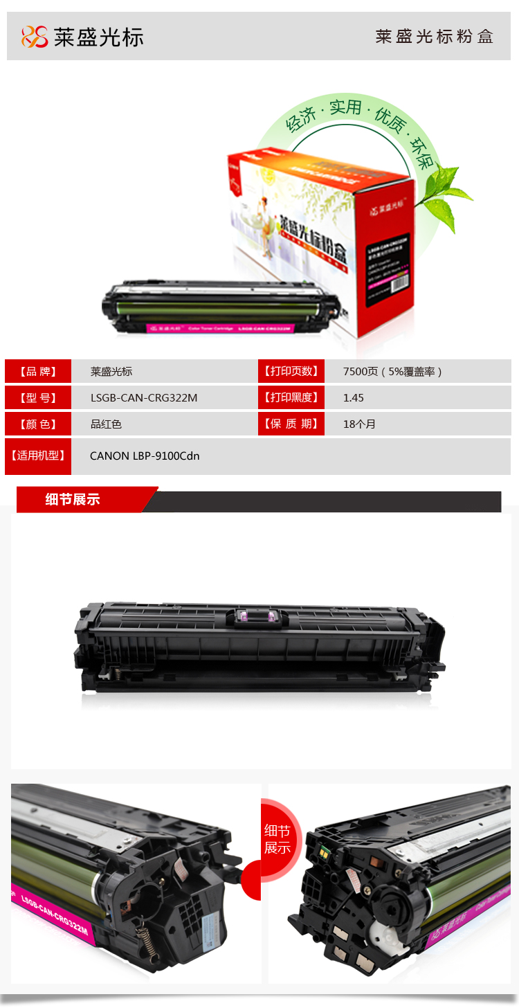 萊盛光標 LSGB-CAN-CRG322M 紅色硒鼓 適用:CANON LBP-9100Cdn 單位:支