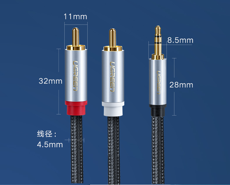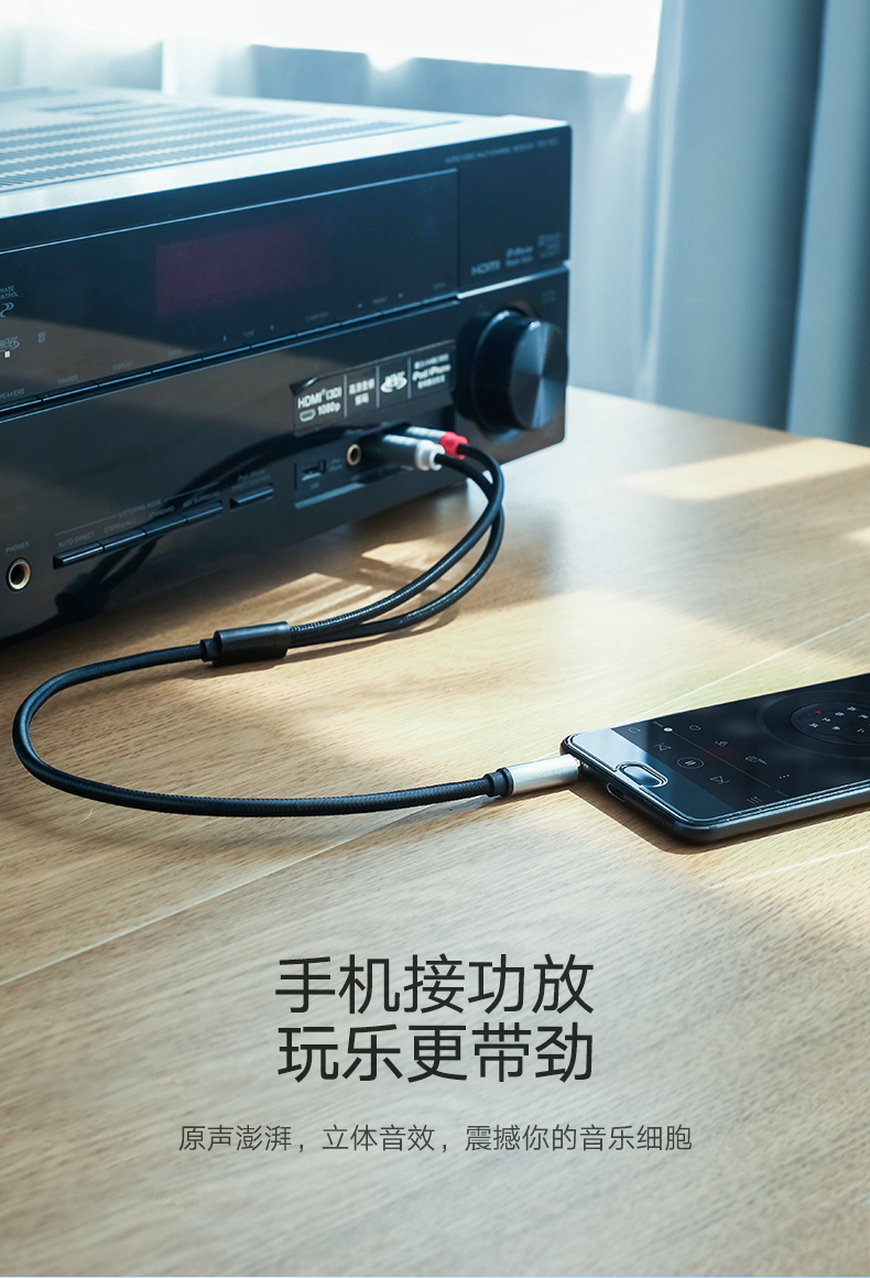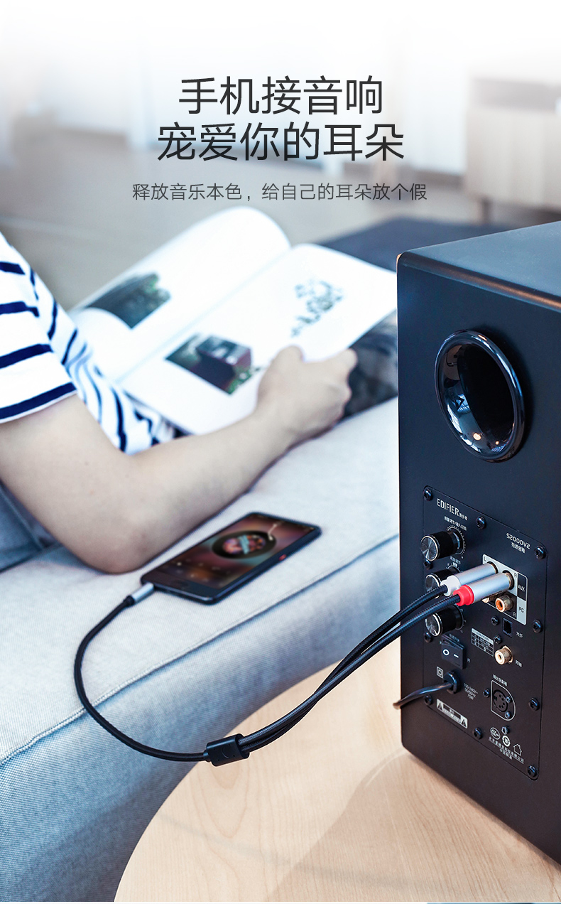 綠聯(lián) AV135 3.5mm公轉(zhuǎn)2RCA公音頻線手機(jī)電腦電視音響箱轉(zhuǎn)換線 棉網(wǎng)款 5米 黑色 單位:根