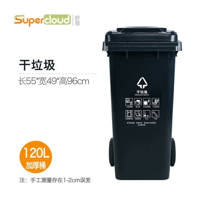 舒蔻 120L帶輪 黑色 干垃圾桶 物業(yè)環(huán)衛(wèi)垃圾分類商用帶蓋分類垃圾桶果皮箱 單個裝