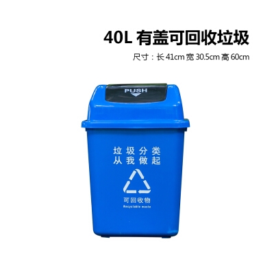 古達(dá) 40L搖蓋 藍(lán)色 可回收垃圾分類垃圾桶帶蓋 飯店餐飲可回收廚余環(huán)衛(wèi)有害戶外四分類 單個(gè)裝