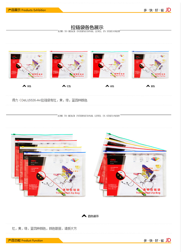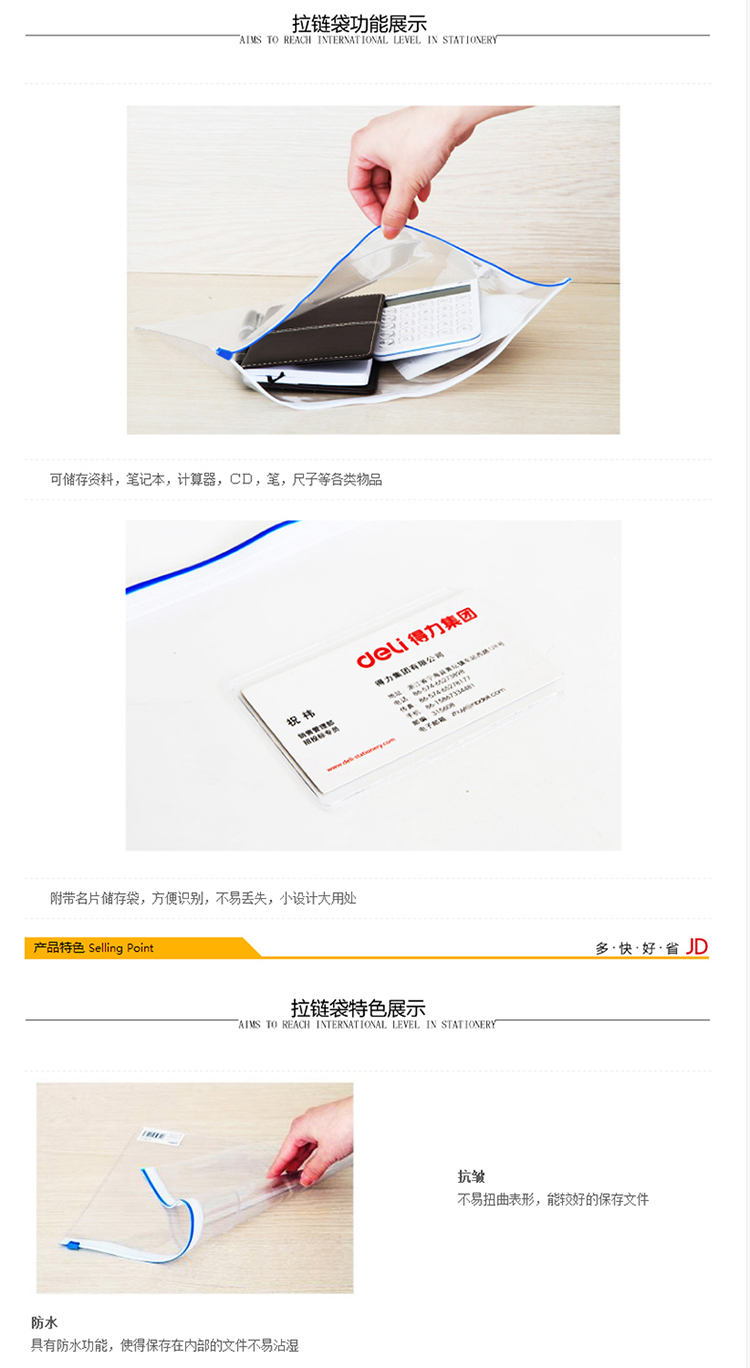 得力拉鏈袋 5526 A4透明防水拉鏈袋 單位:12個(gè)/包