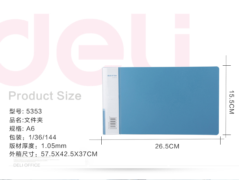 得力票據(jù)夾 5353 發(fā)票夾小號文件夾 264*155*18mm 單位:個