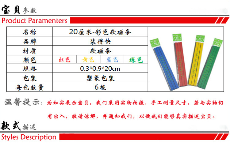裝得快軟磁條 白板貼教學(xué)黑板磁鐵20cm單位:6根/包