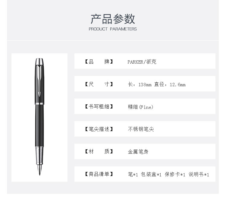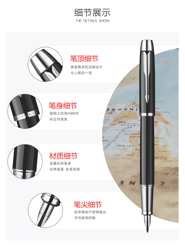 派克鋼筆 IM純黑麗雅白夾鋼筆 F尖 單位:支