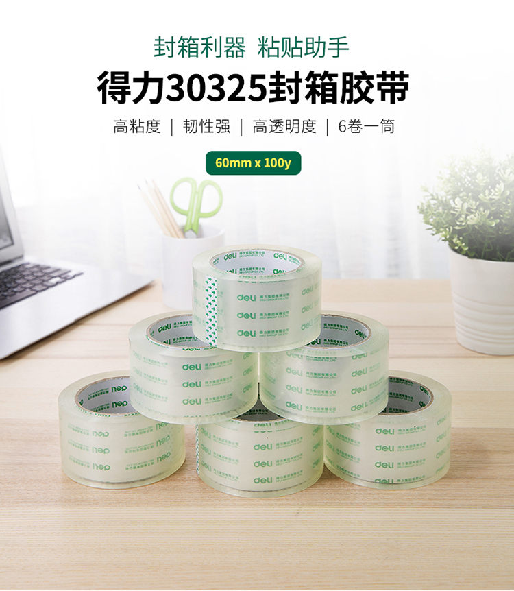 得力膠帶 30325 大卷封箱帶膠帶膠布透明膠封口帶寬 60mm*100y 單位:卷