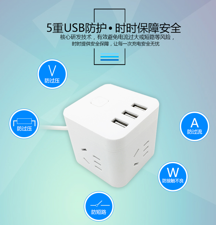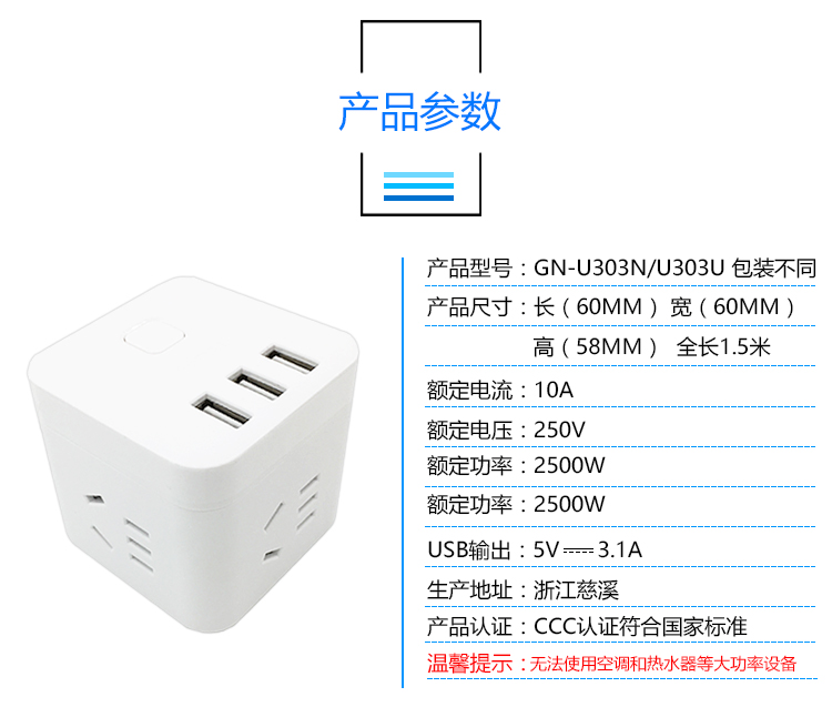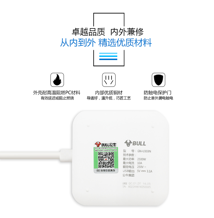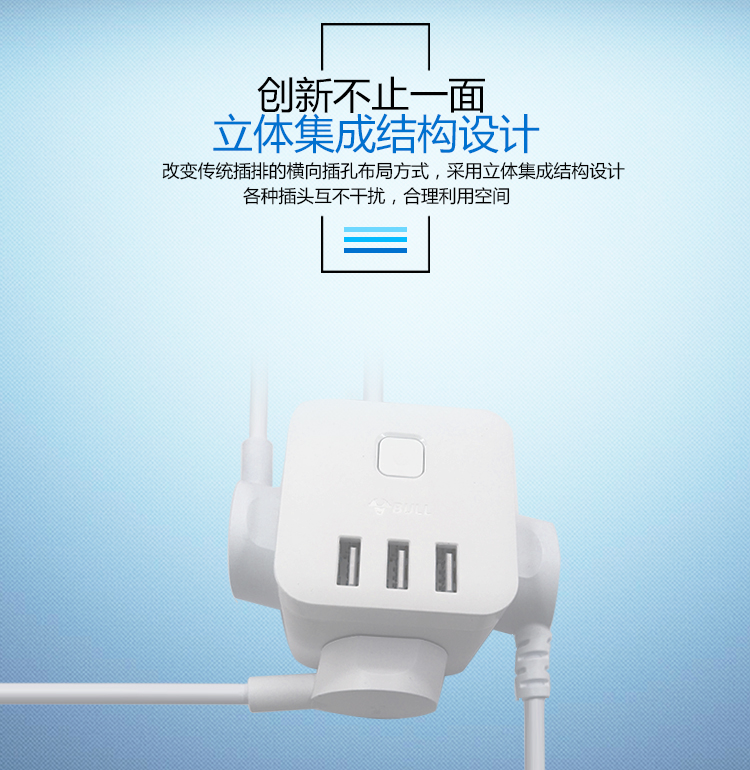 公牛插座 GN-U303U 1.5米3孔帶3個USB口接線板立式 單位:個
