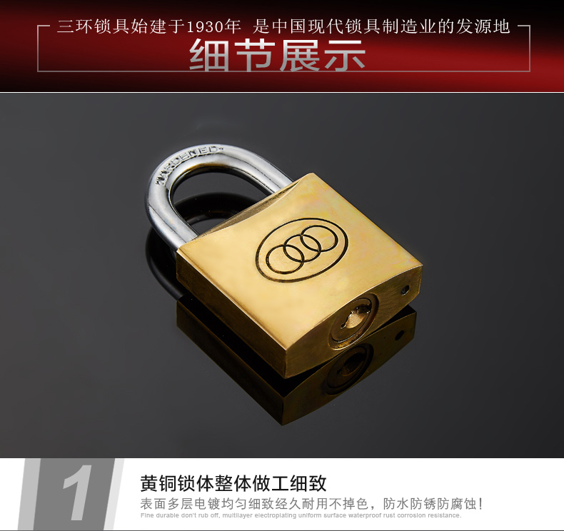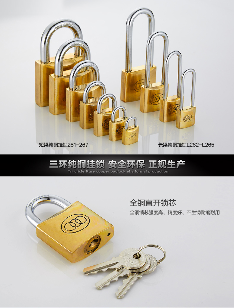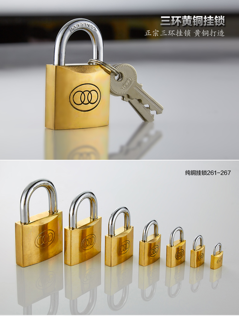 三環(huán)銅鎖 266大門掛鎖 抽屜厚版純銅掛鎖 單位:個