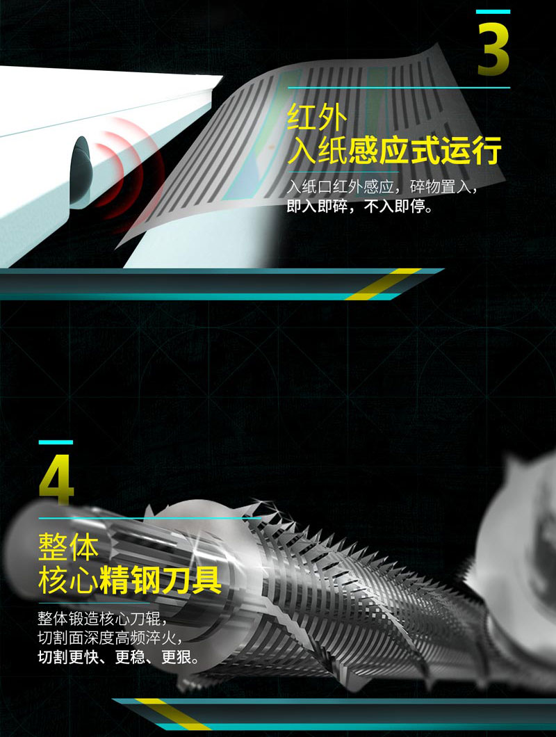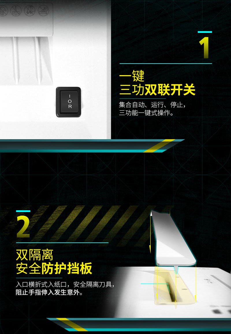 生產(chǎn)制造系中國保密協(xié)會(huì)會(huì)員單位  安全保護(hù)入紙擋板全面安全      滿紙門開多種運(yùn)行狀態(tài)LED顯示 光盤分類回收  PWM電流控制確保電機(jī)超靜音