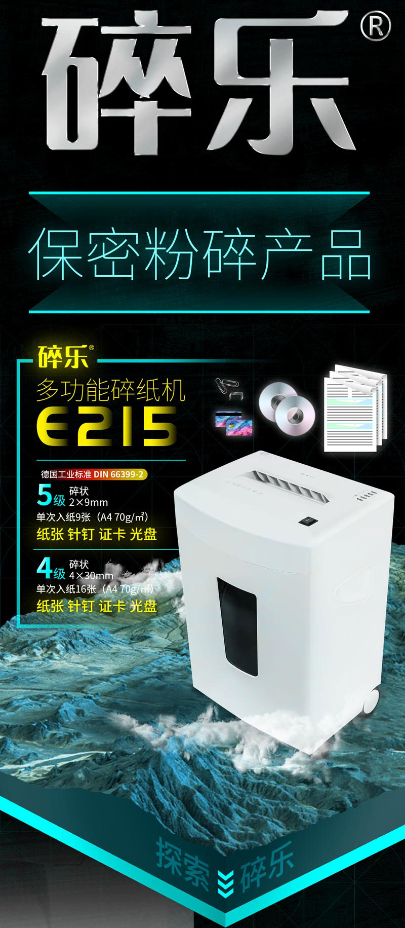 碎樂碎紙機(jī) E215 德[DIN 66399]4級(jí)保密 多功能無過熱碎紙機(jī) 單位:臺(tái)