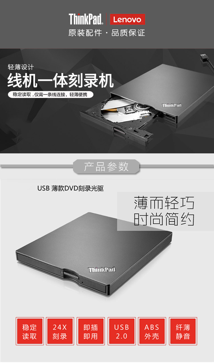 聯(lián)想外置光驅 4XA0F33838 DVD刻錄機 黑色 單位:個