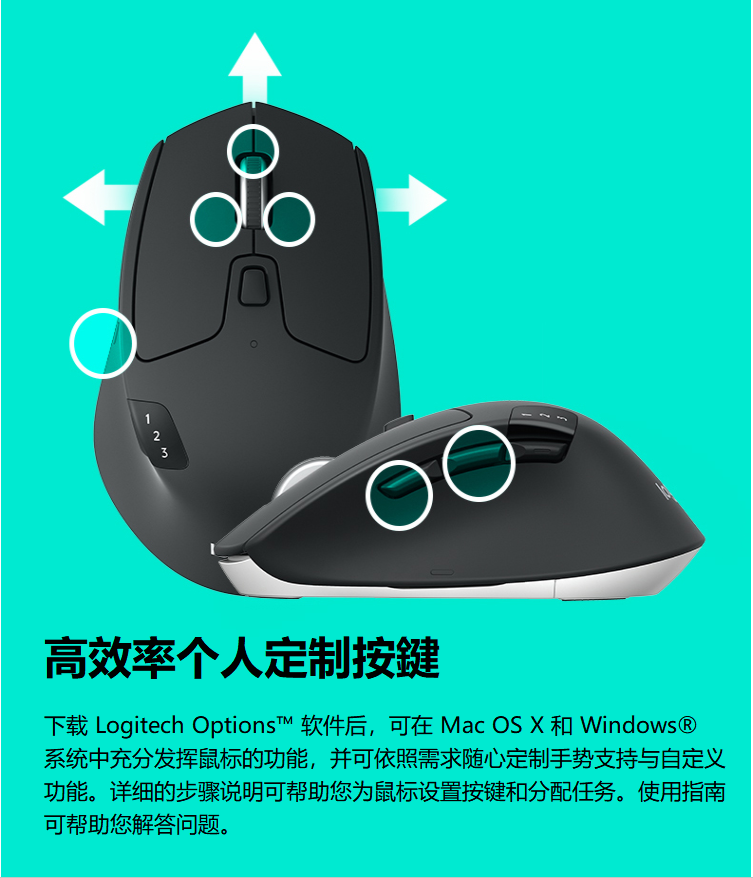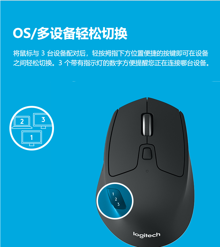 羅技(Logitech)M720 藍牙優(yōu)聯(lián)雙模無線鼠標(biāo) 藍牙鼠標(biāo) 側(cè)鍵 大手鼠標(biāo) 舒適
