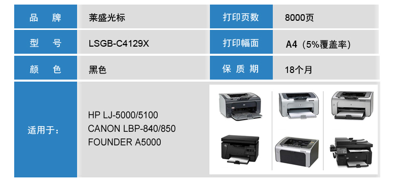 萊盛光標(biāo) LSGB-C4129X 激光打印機(jī) 黑色粉盒 適用HP LJ-5000/5100 CANON LBP-840/850