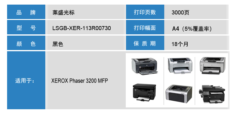 萊盛光標(biāo) LSGB-XER-113R00730 黑色粉盒 適用:XEROX Phaser 3200 MFP 單位:支