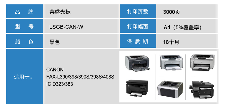 萊盛光標 LSGB-CAN-W 黑色粉盒 適用:CANON FAX-L390/398/390S/398S/408SIC D323 單位:支