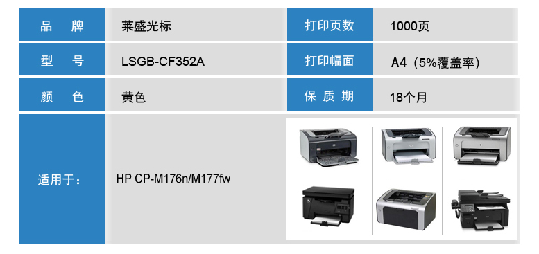 萊盛光標(biāo) LSGB-CF351A 青色粉盒 適用:HP CP-M176n/M177fw 單位:支