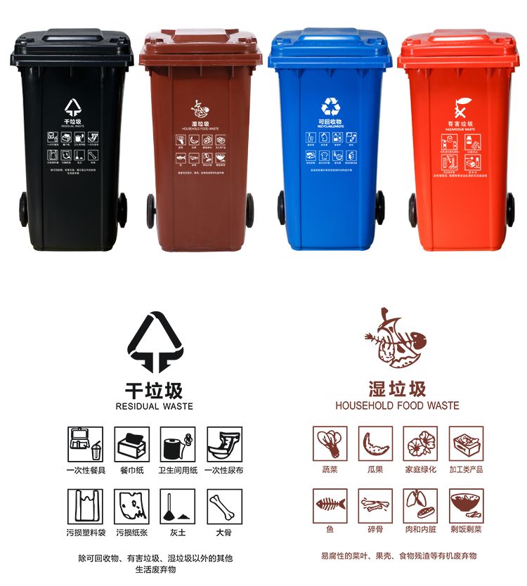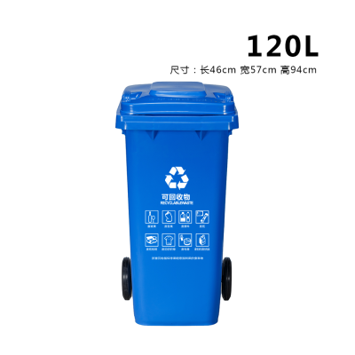 ABEPC 120L帶輪 藍(lán)色 可回收垃圾桶 物業(yè)環(huán)衛(wèi)垃圾分類商用帶蓋分類垃圾桶果皮箱 單個(gè)裝