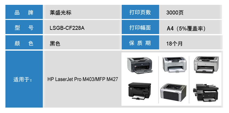 萊盛光標(biāo) LSGB-CF228A 黑色粉盒 適用:HP LaserJet Pro M403/MFP M427 單位:支
