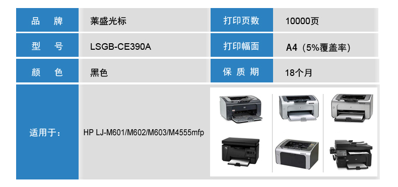萊盛光標 LSGB-CE390A 黑色粉盒 適用:HP LJ-M601/M602/M603/M4555mfp 單位:支