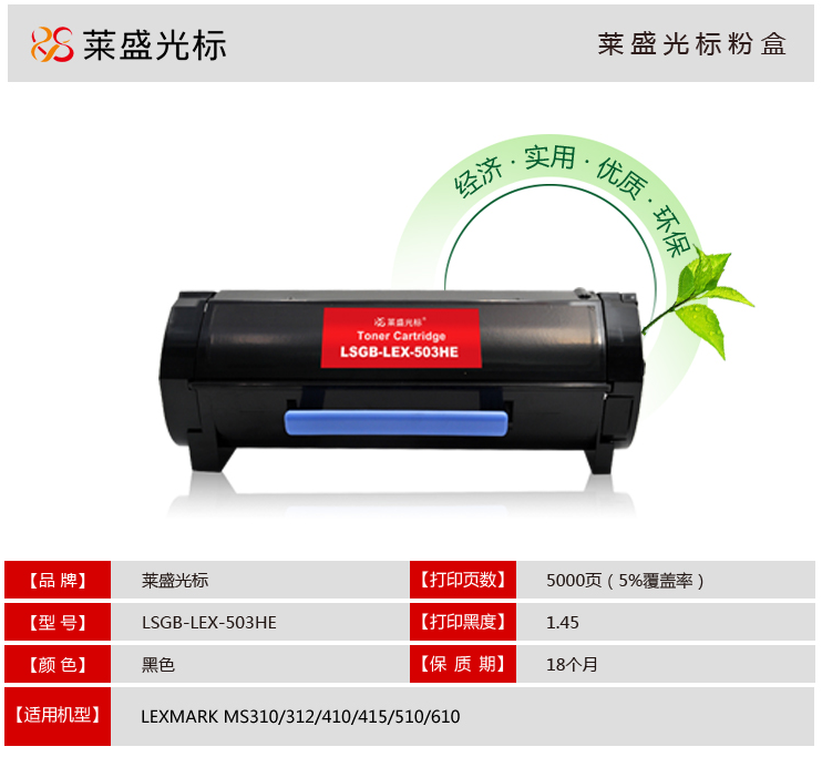 萊盛光標(biāo) LSGB-LEX-503HE 黑色硒鼓 適用:LEXMARK MS310/312/410/415/510/610 單位:支