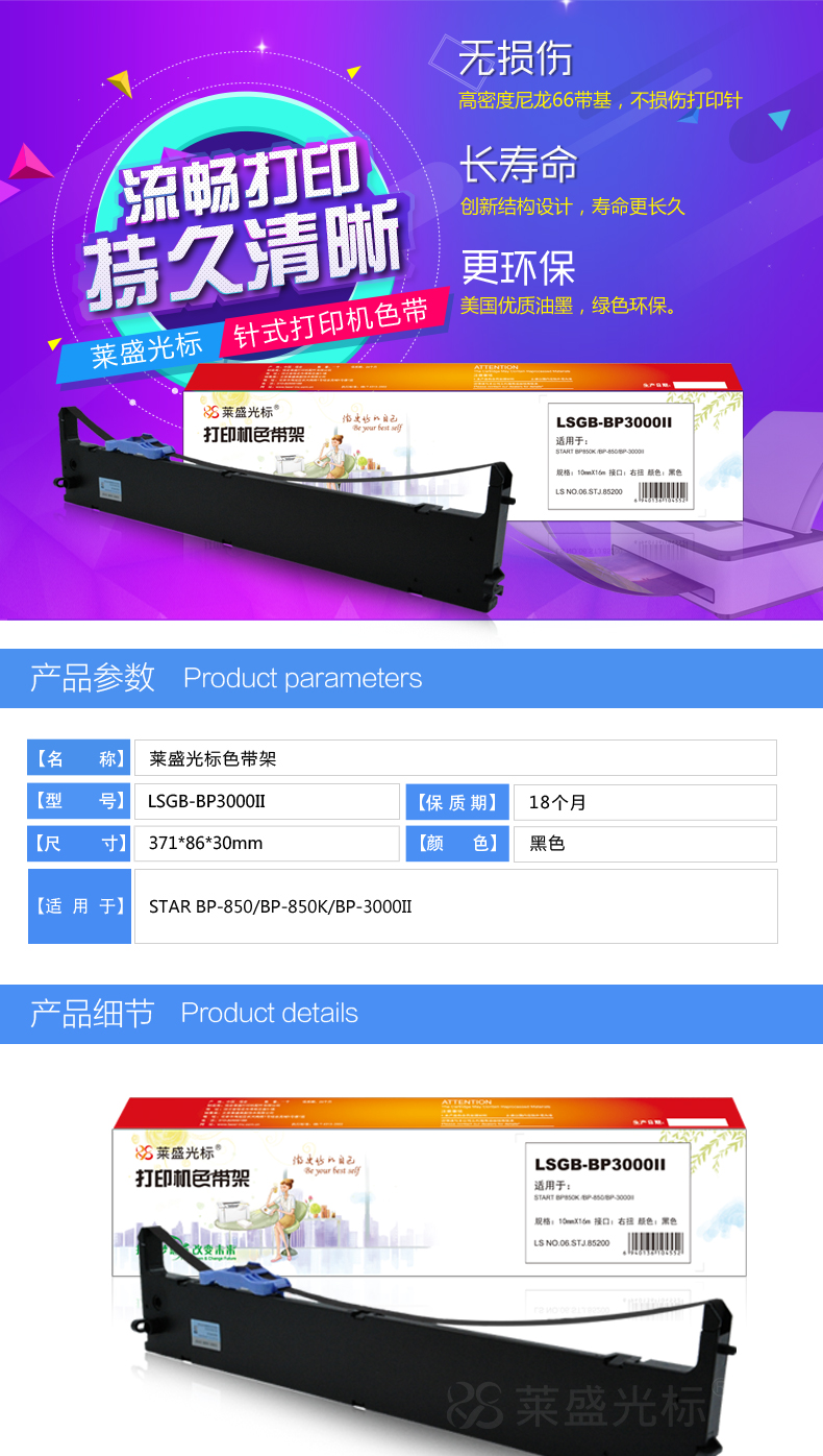萊盛光標(biāo) LSGB-BP-3000II 色帶架 黑色 適用:實達STAR BP-850/BP-850K/BP-3000II 單位:支