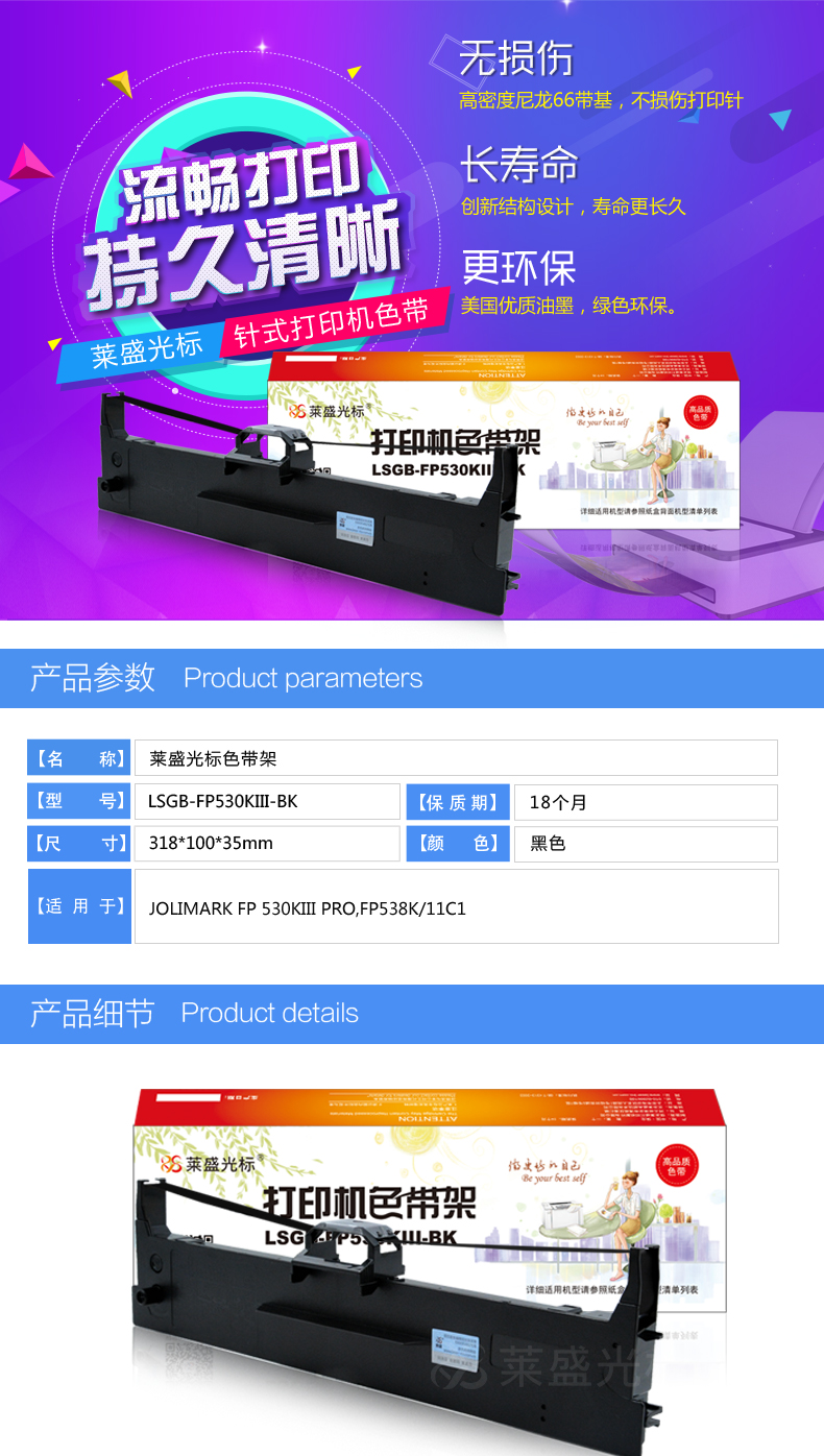 萊盛光標 LSGB-FP530KIII-BK 色帶架 黑色 適用:映美JOLIMARK FP 530KIII PRO,FP538K/11C1 單位:支