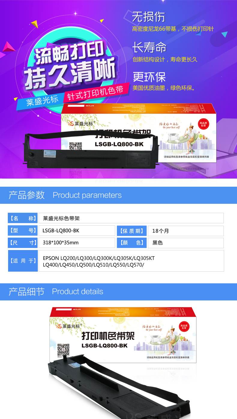 萊盛光標 LSGB-LQ800-BK 色帶架 黑色 適用:EPSON LQ200/LQ300/LQ300K/LQ305K/LQ305KT/LQ400 單位:支