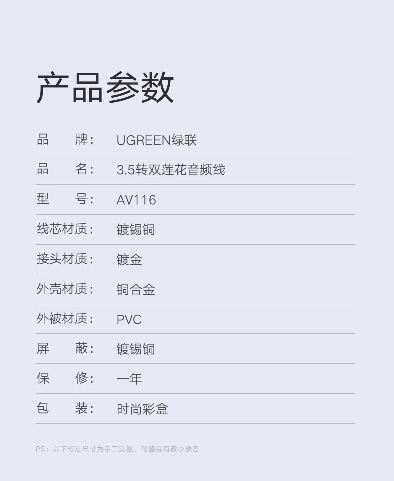 綠聯(lián) AV116 3.5mm音頻線(xiàn)一分二 3.5轉(zhuǎn)雙蓮花頭2RCA紅白公對(duì)公連接線(xiàn)1.5米 黑色 單位:根