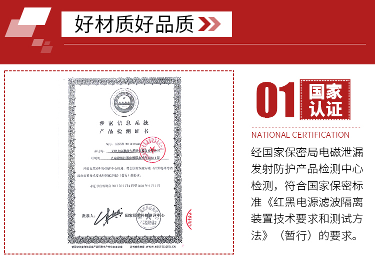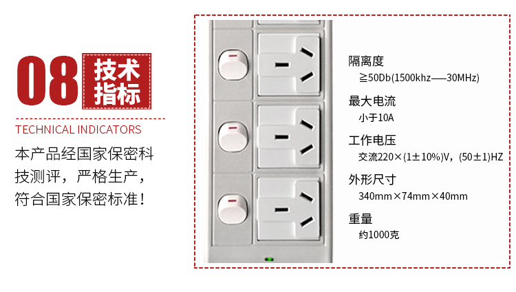 天津光電插座 RBI-1 紅黑電源隔離插座防電磁泄露國密認證 單位:個