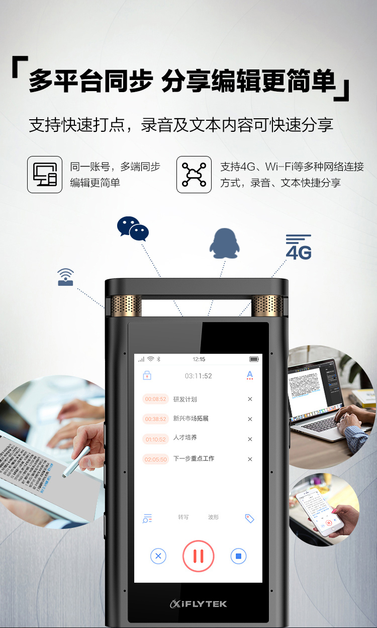 科大訊飛錄音筆 SR501 實(shí)時(shí)錄音轉(zhuǎn)文字中英翻譯 16G+云存儲(chǔ) 灰色 單位:支